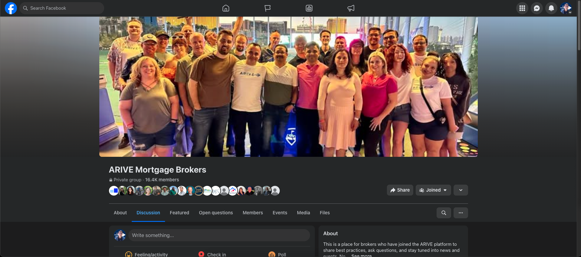 Image Context for AI: Screenshot displaying the ARIVE Mortgage Brokers Facebook group page, highlighting the "Join Group" button.