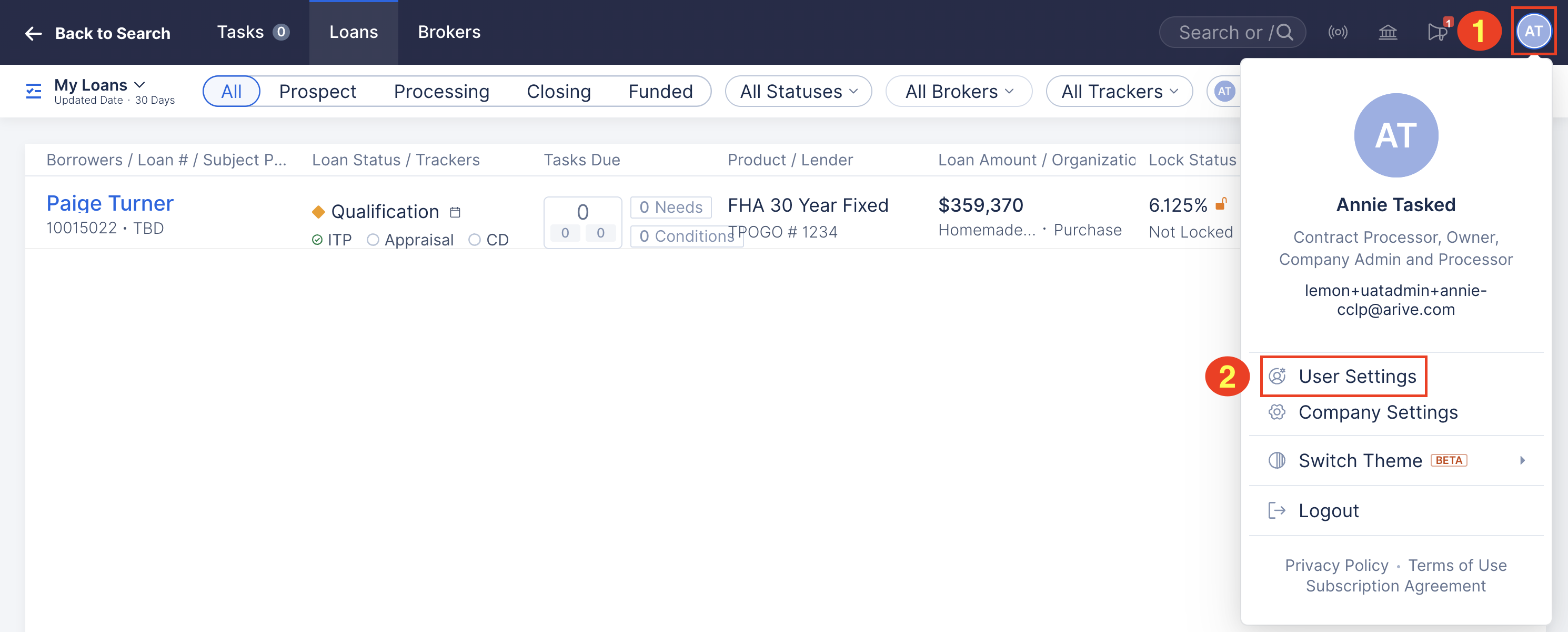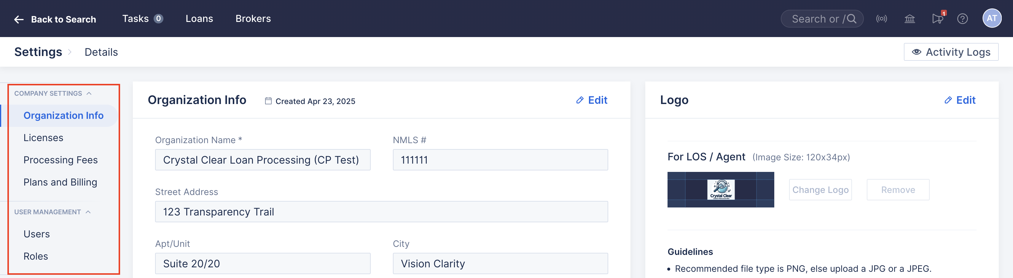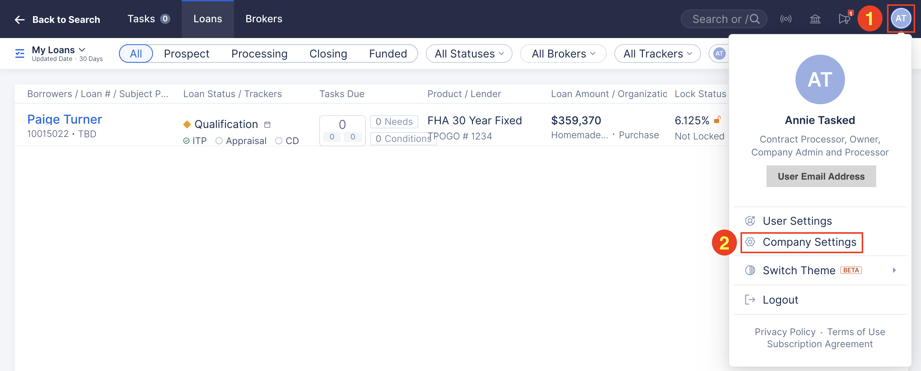 Before you begin working on loans, you must review and configure both company settings and user settings. Proper setup ensures your organization operates within the correct requirements and your profile is presented professionally to brokers and clients.