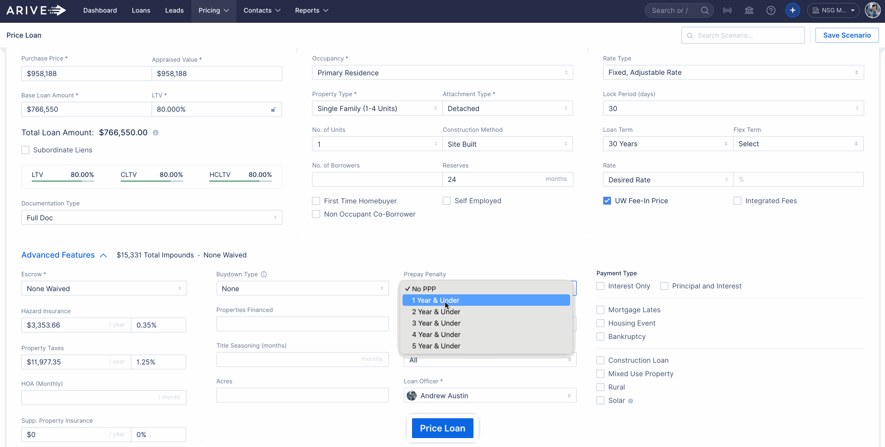 - Added prepayment penalty types: Flat, Tiered, Months of Interest, to account for different prepayment penalties.