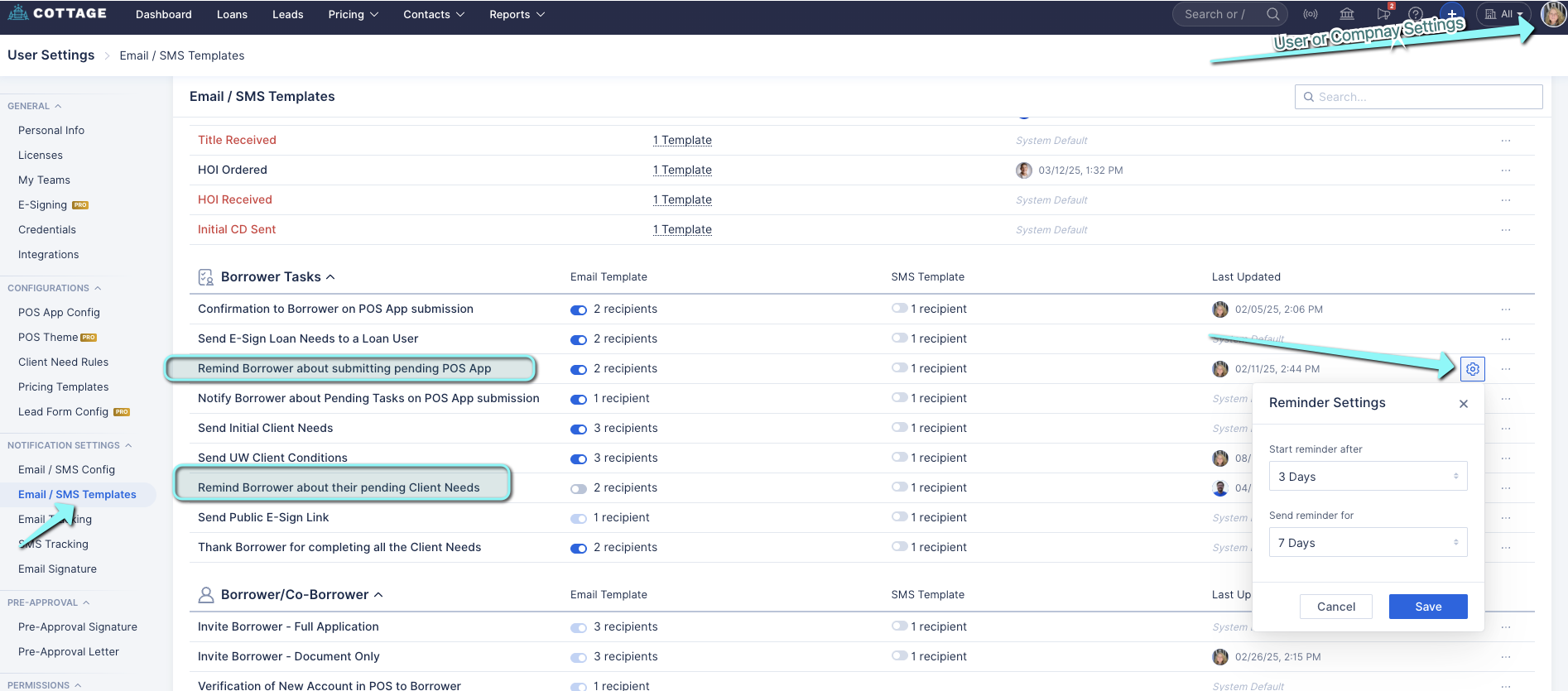 Enable & Customize Reminders for All Loans