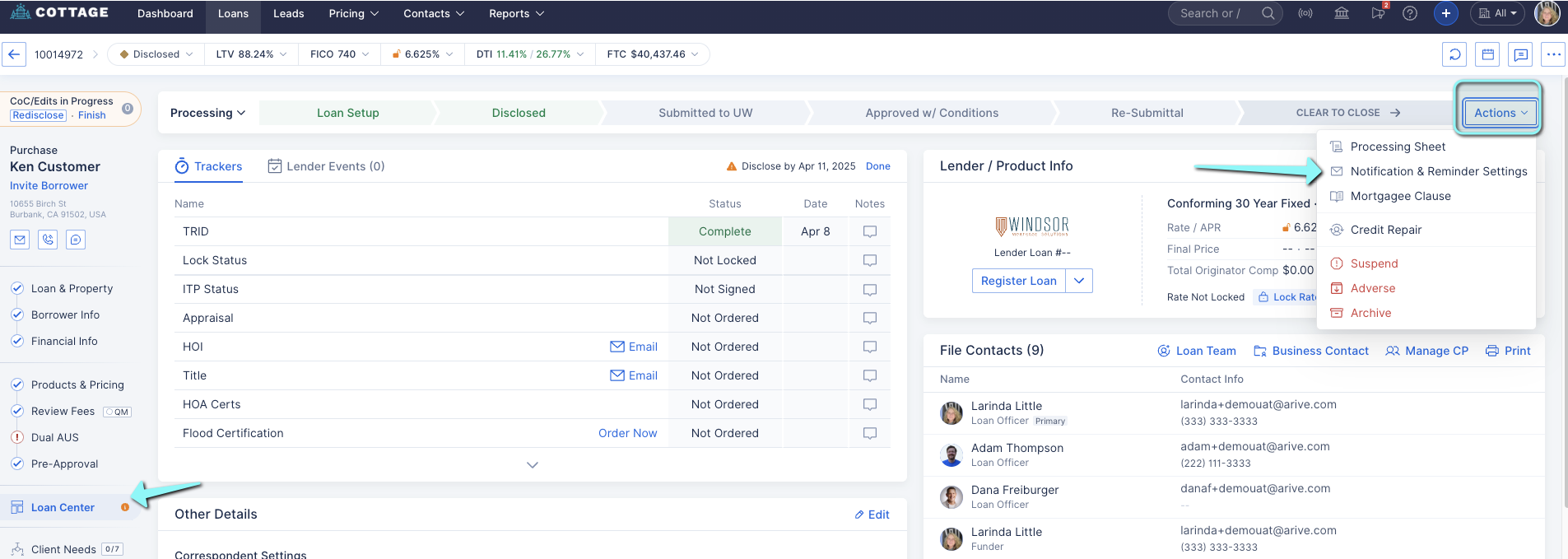 1. Navigate to your loan > Loan Center.