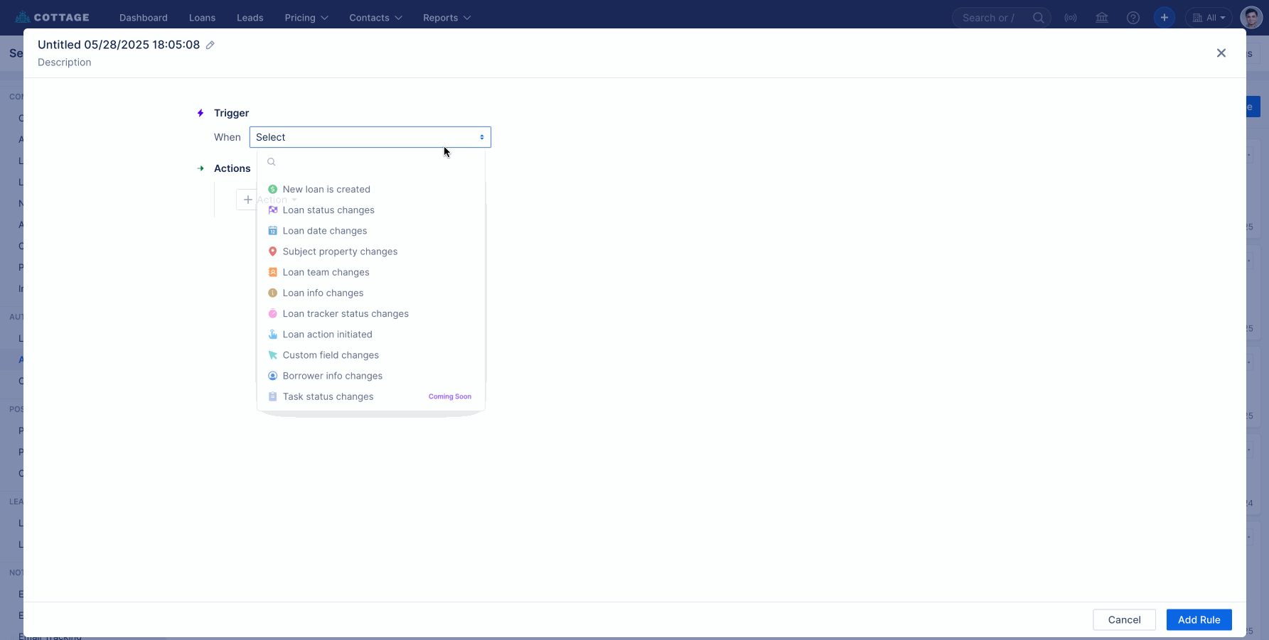 A new field called Lender has been added to the Loan Info Changes Trigger within Automation Rules. This field supports two operators: "is set" and "changes."