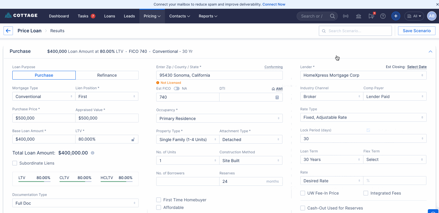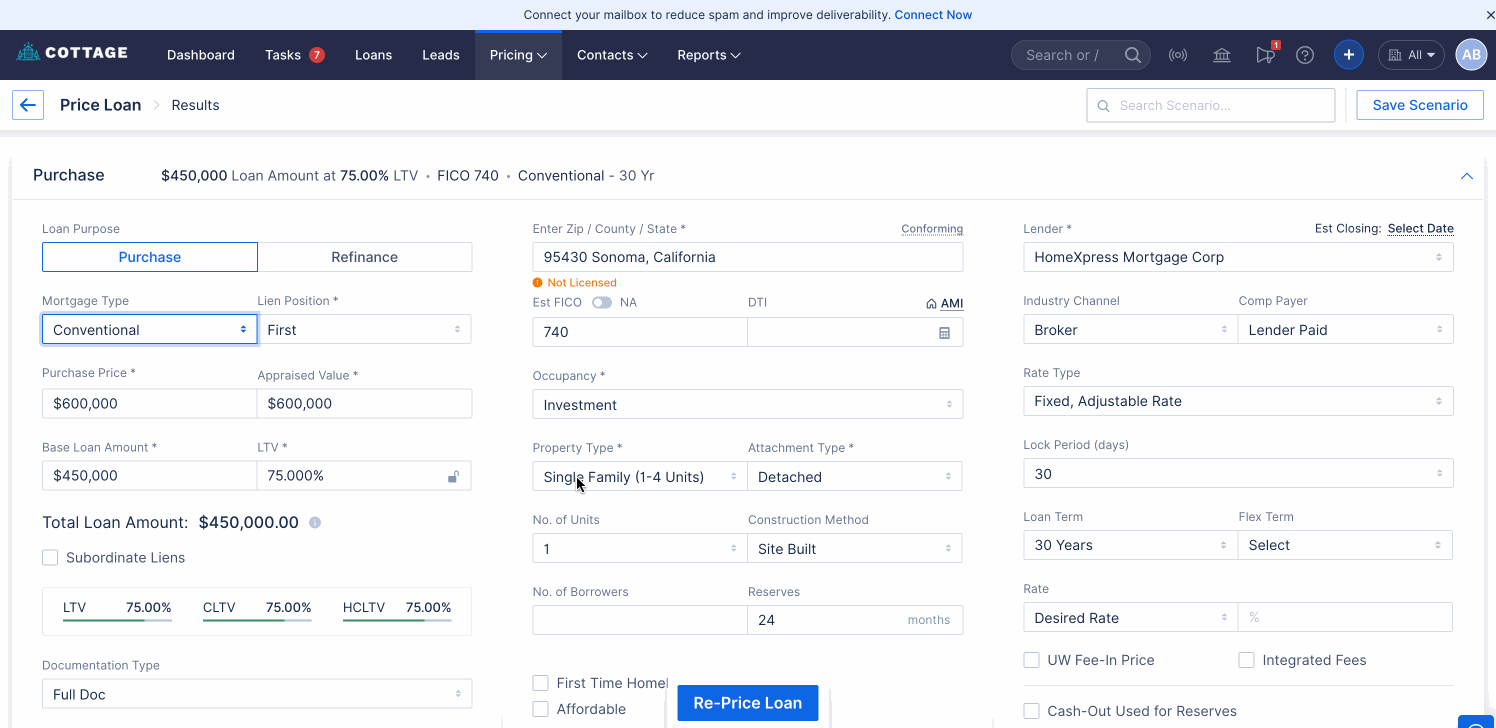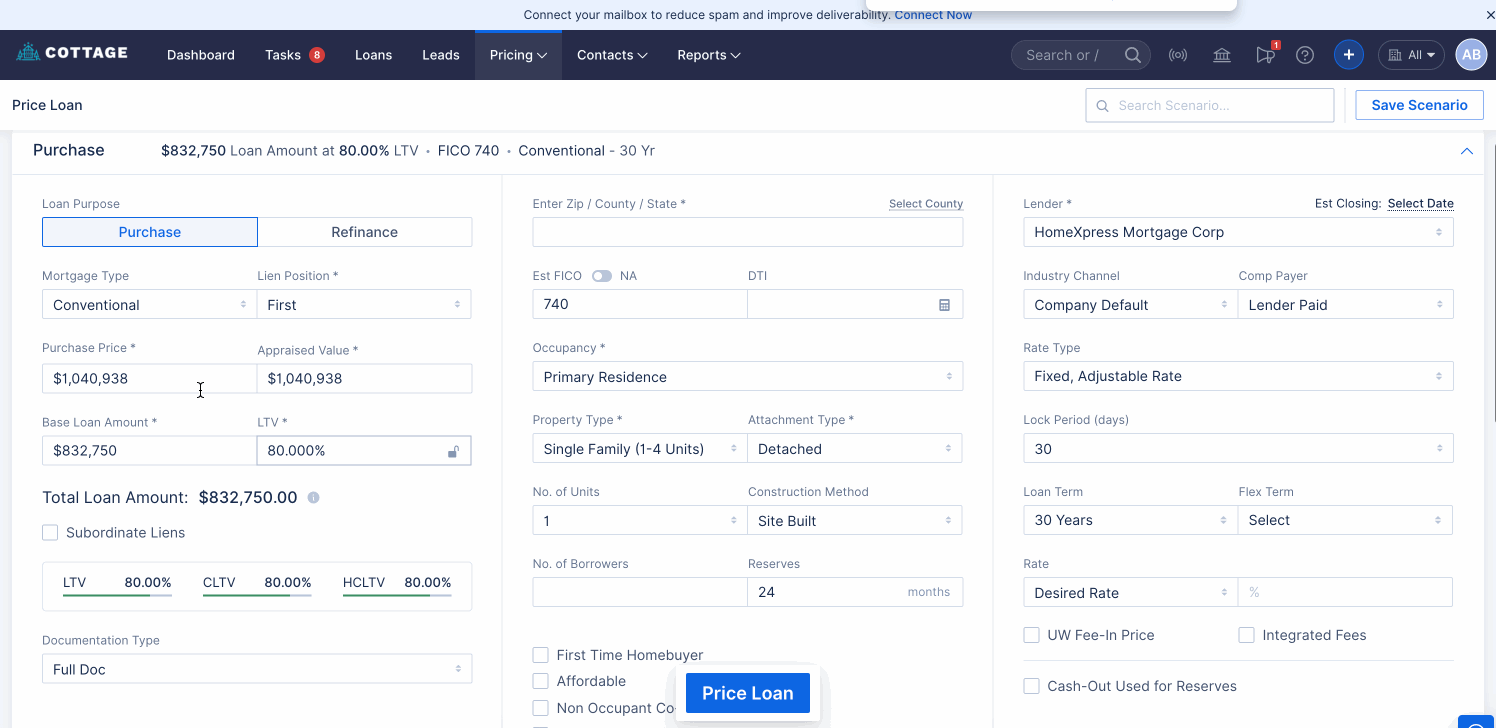 As part of this enhancement, the “Cash-Out Used for Reserves” checkbox has been added for HomeXpress on the Pricing Screen.