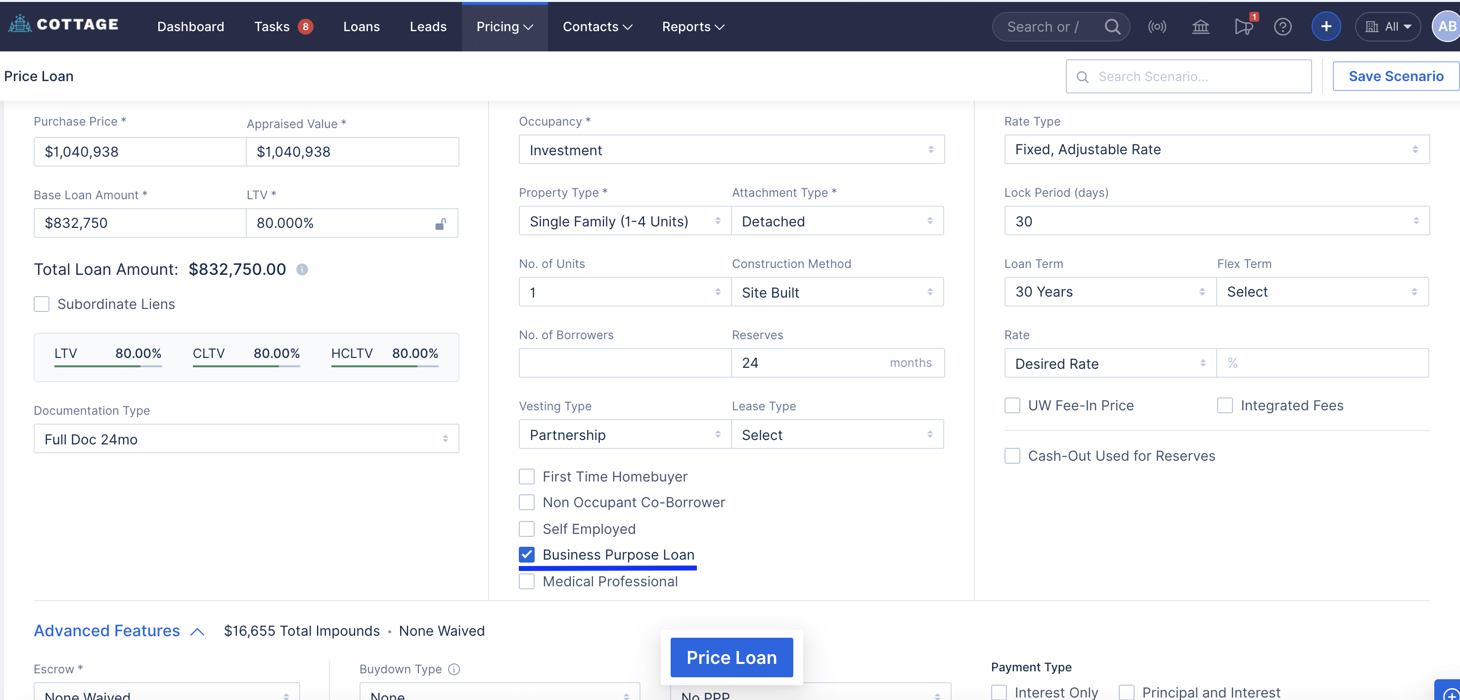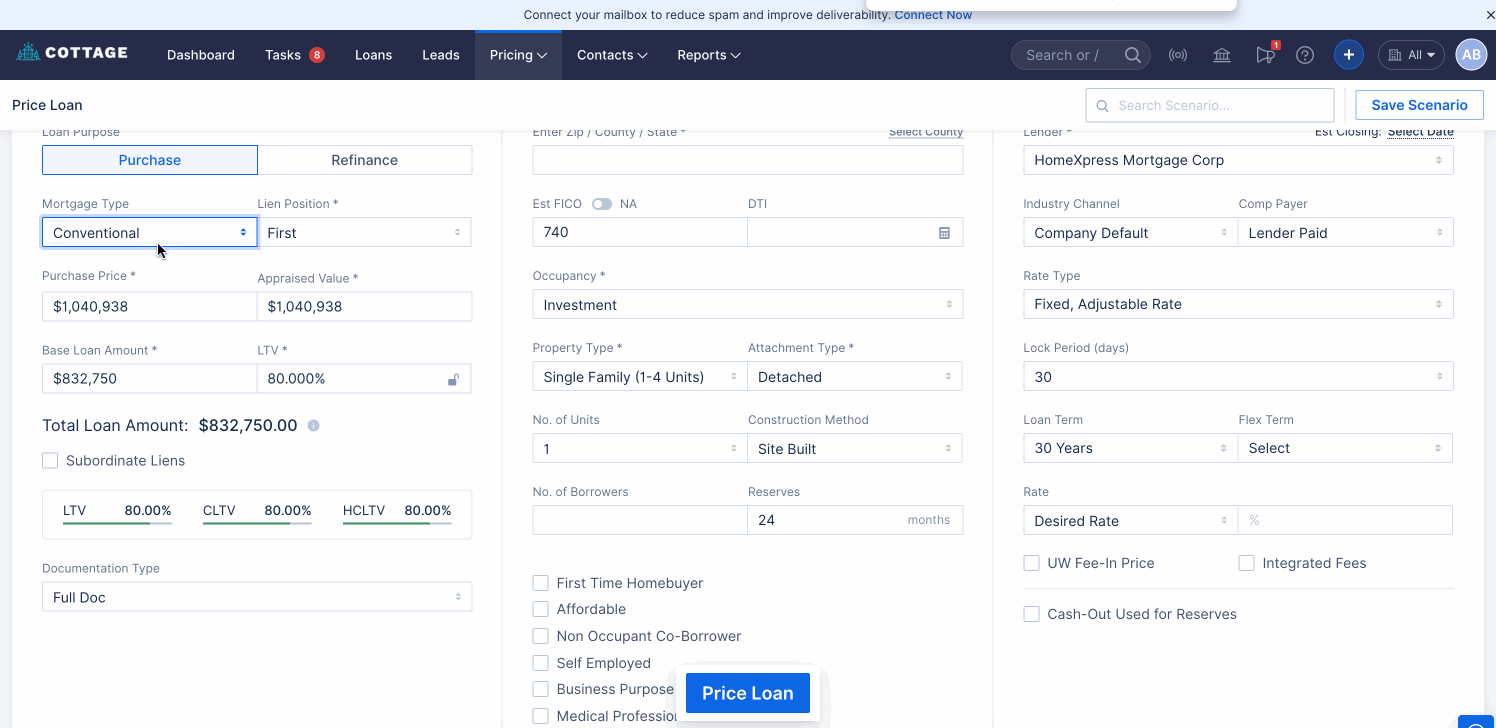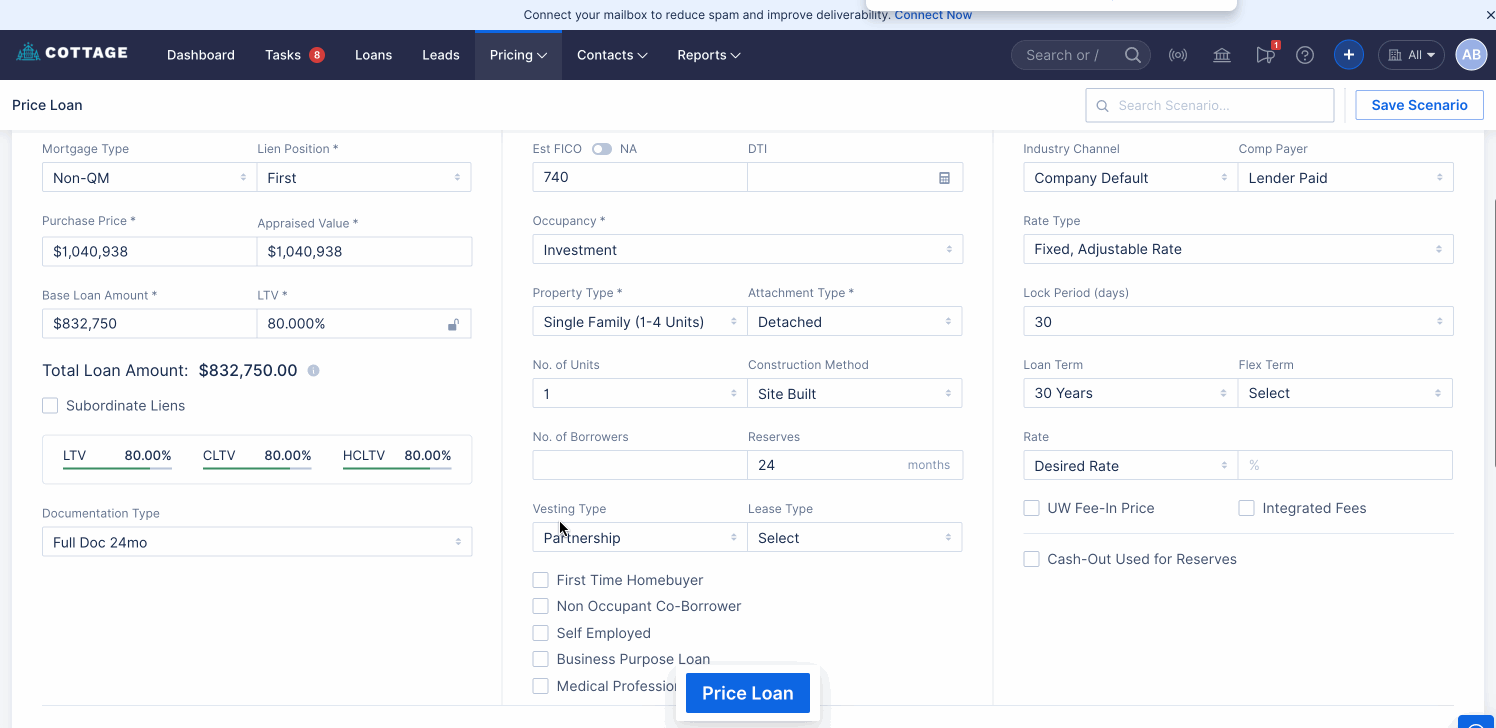 As part of this update, a “Business Purpose Loan” checkbox has been added to the Pricing Screen for the NQM mortgage type under Investment Occupancy.