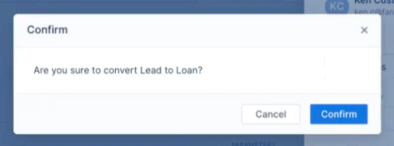 Important: Keep in mind that confirming this action will remove the lead record permanently and replace it with the new loan record.