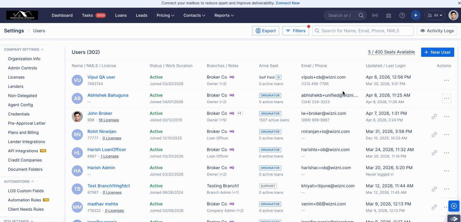 - Both Company Admins and Associate Admins can access and modify user settings, but only for users who are in the Active or Invite Sent states.