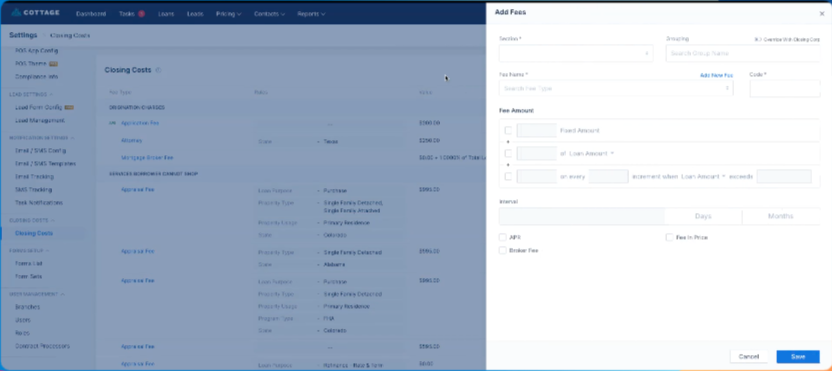 Fees configured on the Lenders tab apply only to that specific lender. Fees set up on the Closing Costs screen are general fees that can be applied to all lenders and loan products, unless you define logic that specifies otherwise.