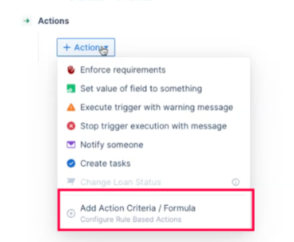 - Click Add Action Criteria or Formula at the bottom of the menu.