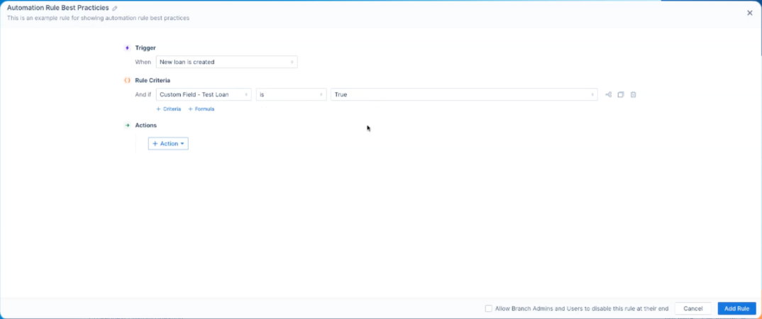 - Enable this setting on one or two test loan files to validate your rule.