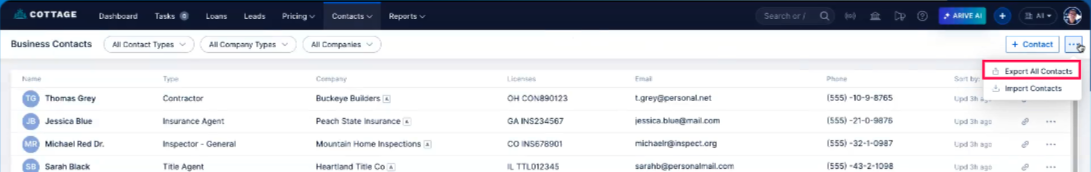 Learn how to easily export all your business contacts into a downloadable Excel file.
