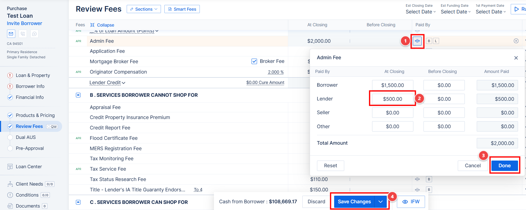This guide explains how to designate a fee or a portion of fee to reflect as paid by the lender using the Split fee feature. By following these steps, you can accurately reflect lender contributions within the loan file.